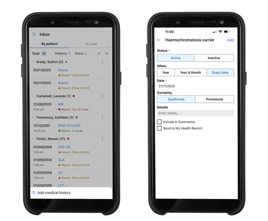From the Inbox, select the actions icon next to a document record and tap Add medical history.