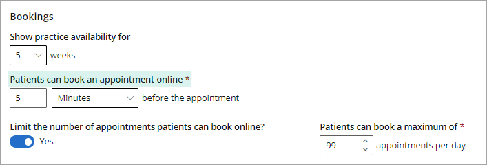 Alternatively, settings in PrOS can be used for 'On the day' appointments specifically for online booking by utilising the patients can book an appointment online setting shown in step 6 of the Online Settings article. Exclusion Periods can too be set aside per doctor for this purpose but be sure to consider that this type of appointment is typically set aside for high priority appointments.