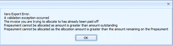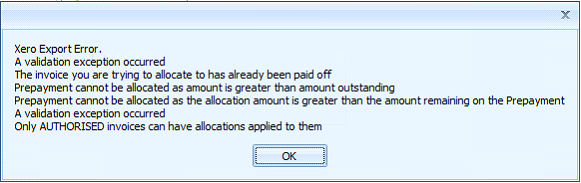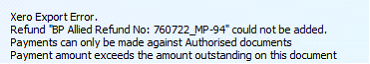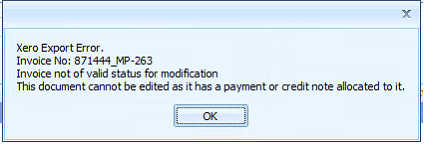 This happens when an invoice with a payment assigned has been exported to Xero and then in Bp Allied the payment is unassigned and the invoice is modified and exported again.