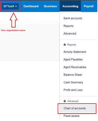 Go into the organisation you have created with Xero