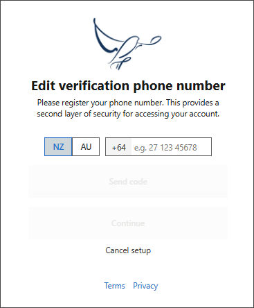 - Based on the option chosen, enter a mobile phone number or email address and click Send code.