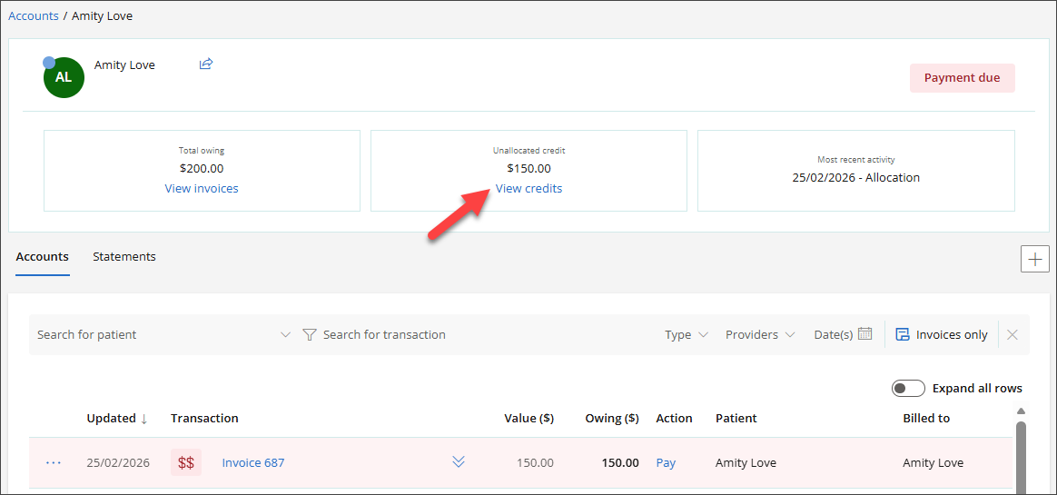 From Unallocated Credit, click View Credits.