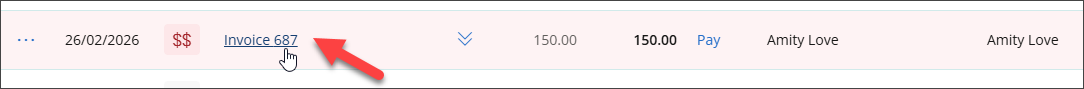 - Locate the invoice you want to adjust and click the Invoice link to open the invoice details screen.