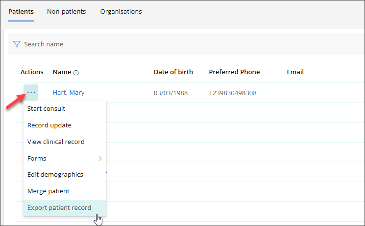- Open Address Book and search for the patient. Select the meatball menu ⋯ beside the patient’s name and click Export patient record.