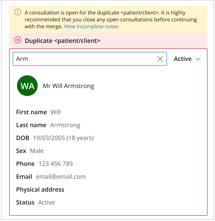 The Draft items search has had some minor improvements made. The patient filter is now left aligned, the name of the search is now "Patient / Client search" (depending on your settings) and the wording for the "Billed to" filter has been changed to "Bill to". |