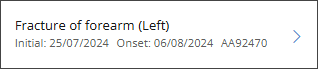 The Conditions and Past Consults screens have been enhanced to make injury Side and Date information easier to view. On the Conditions screen, the Side (left or right) now displays at the end of the diagnosis header.
