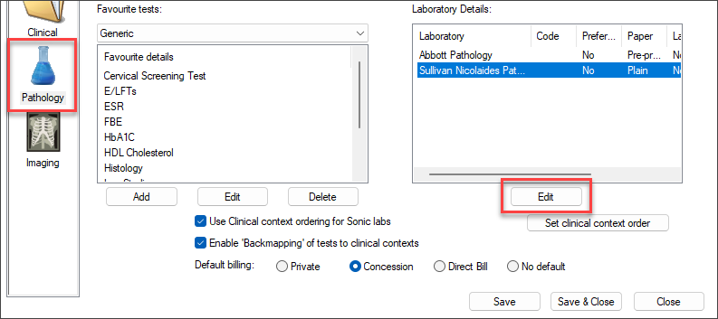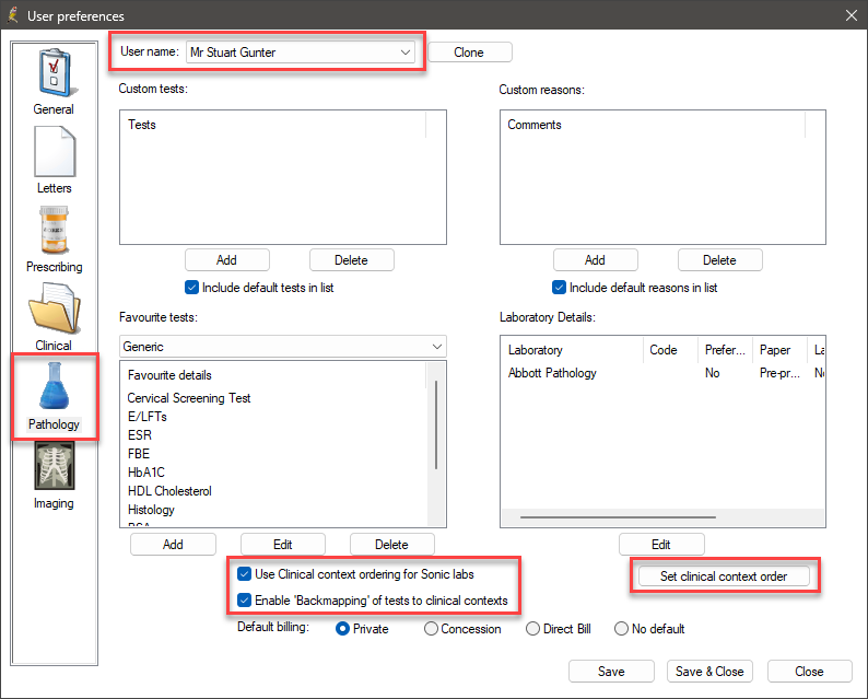 IMPORTANT If you do not see the option Use Clinical context ordering for Sonic labs in your screen, your Bp Premier database has not been updated for GBR. Run the setup file supplied to you by Best Practice Software.