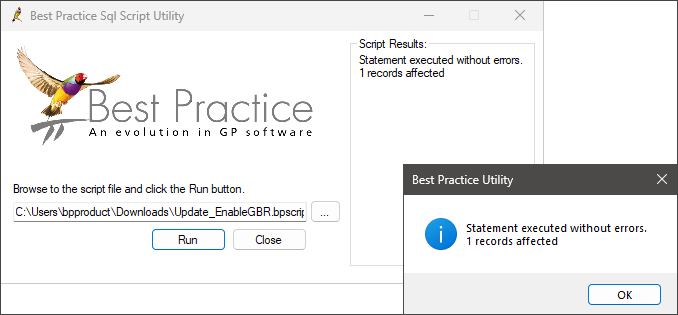 - Browse to the files you downloaded and double-click the BPScriptRunner.exe file to get the prompt below:
