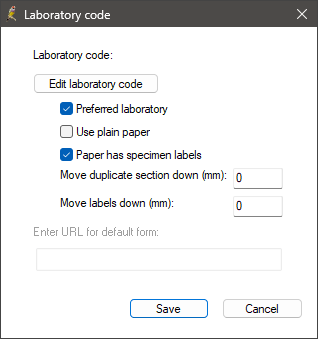 - Click Edit. The Laboratory code pop up appears.