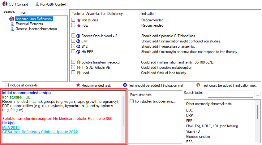 NOTE If this option doesn't seem to be working, from the Pathology screen, go to the Setup Favourites tab and tick Enable “Backmapping” of tests to clinical contexts.