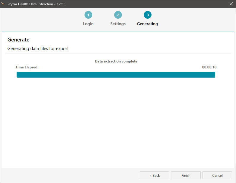 - Tick Upload generated data to Pryzm to confirm that you want to send the data extraction report to Pryzm.