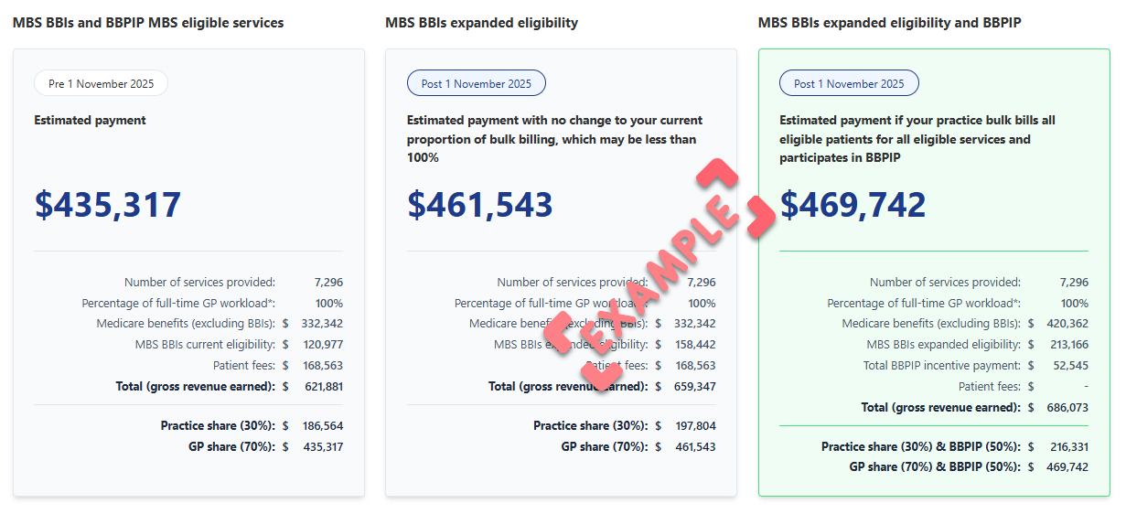 See the Australian Government Department of Health, Disability and Ageing website for further information on changes to Bulk Billing, and the introduction of the Bulk Billing Practice Incentive Program, in place from 1 November, 2025.